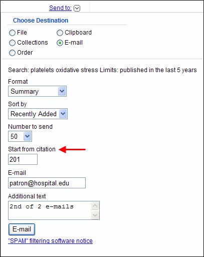 Hasta ahora, había un límite de 200 referencias que se podían enviar por correo electrónico. La novedad consiste en que PubMed ha añadido el campo de «Start from citation» a la pantalla de envío por correo electrónico.