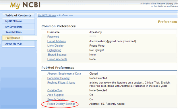 Si disponemos de una cuenta en MyNCBI ahora podemos modificar la forma en que nos muestra el resultado de las búsquedas.