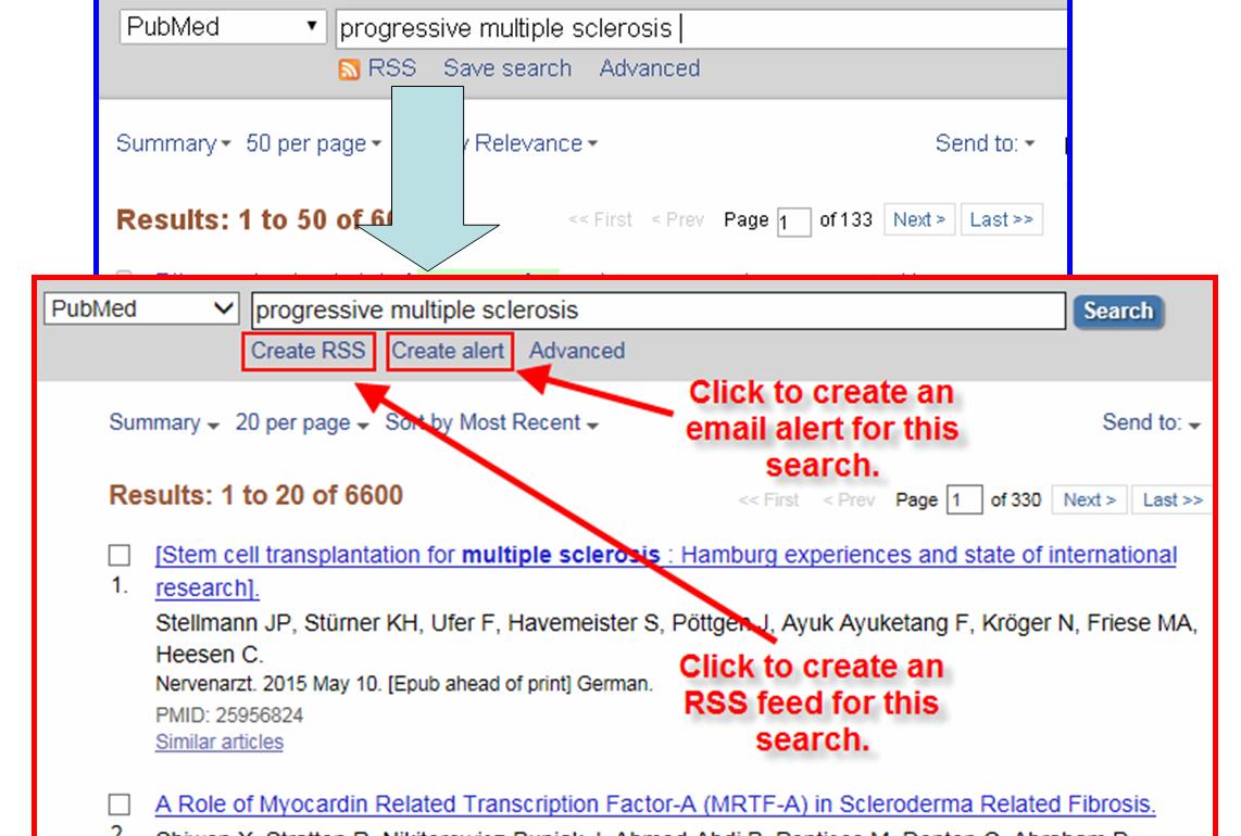 Acaba de anunciar la NLM que en breve cambiará el nombre para la función de MyNCBI de crear alertas por correo electrónico pasando de «Save Search» a «Create Alert». También se renombrará el enlace «RSS» a «Create RSS».
