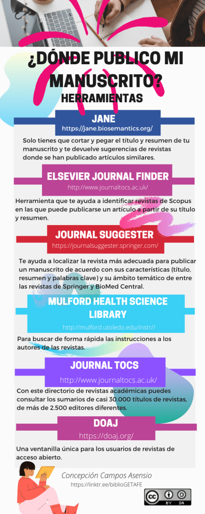 ¿Quieres publicar tu manuscrito pero no sabes a que revista enviarlo? Esta infografía te proporciona herramientas para identificar y localizar la revista en la que publicar.