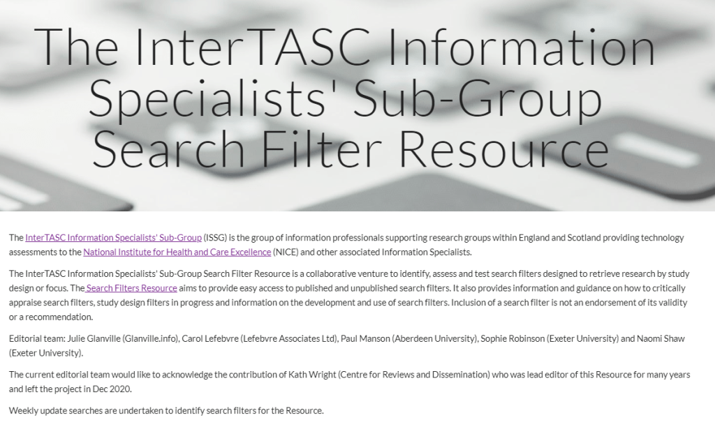 Página The InterTASC Information Specialists’Sub-Group (ISSG)https://sites.google.com/a/york.ac.uk/issg-search-filters-resource/home?authuser=0