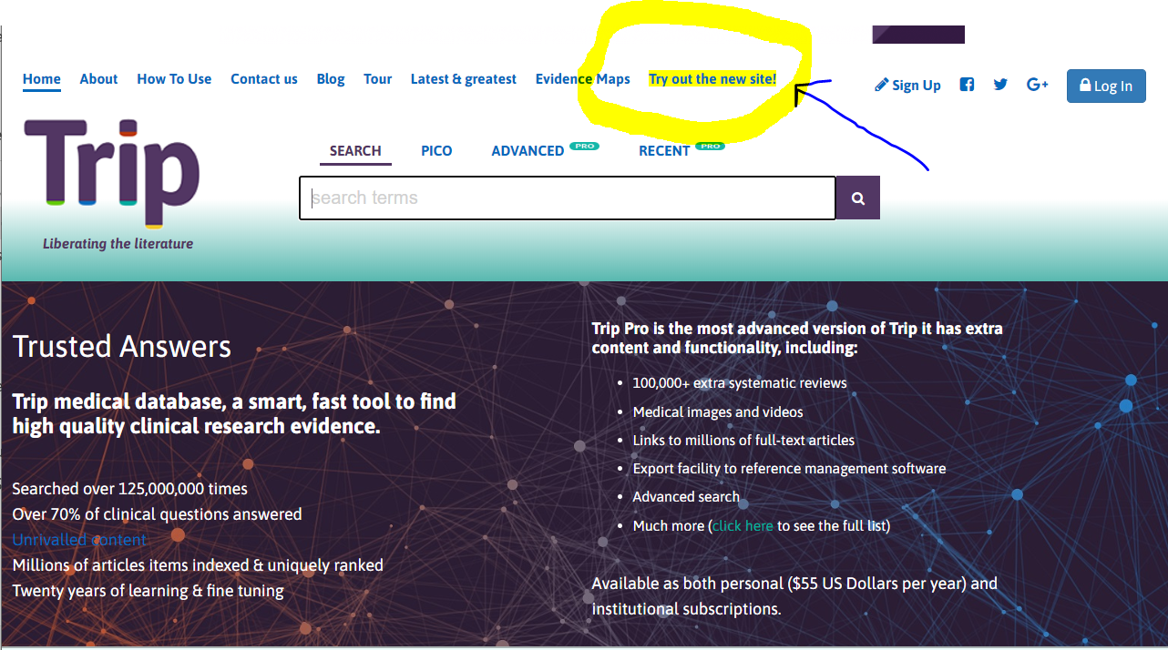 The new site has arrived [Internet]. Trip Database Blog. Trip Database Blog; 2021 [cited 2021 Apr 6]. Available from: https://blog.tripdatabase.com/2021/03/28/the-new-site-has-arrived/