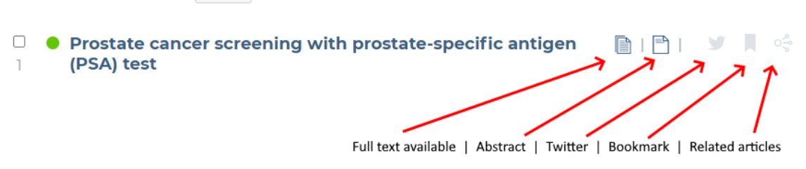 En el nuevo TRIP, la pantalla de resultados para la búsqueda «prostate cancer screening» es la siguiente (en amarillo si es la versión de pago y verde si es la gratuita):