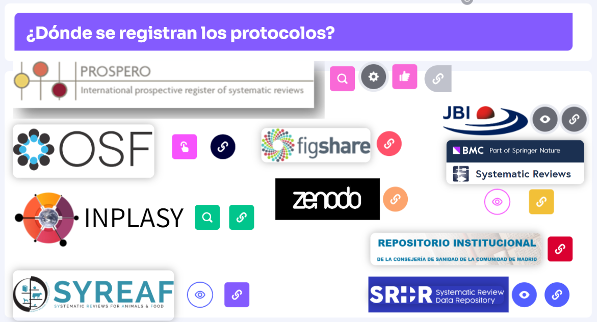 - Campos Asensio C. Necesidad de protocolo en las revisiones de síntesis de evidencia y dónde registrarlo. Biblioboletín. 2022; Junio (13):9. Disponible en: https://repositoriosaludmadrid.es//handle/20.500.12530/54668