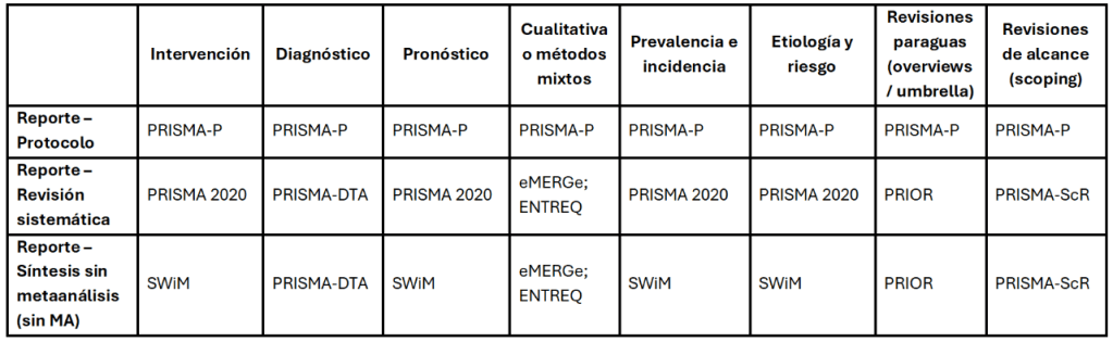 - Desde el protocolo: define pregunta, criterios, outcomes, comparadores y plan de síntesis a priori (para protocolos, PRISMA-P).