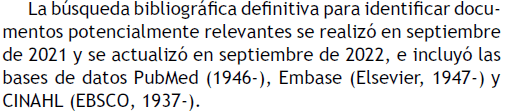 Y no nos olvidaremos de buscar en EMBASE, dado que es la base de datos de elección para la búsqueda de estudios de intervenciones farmacológicas.