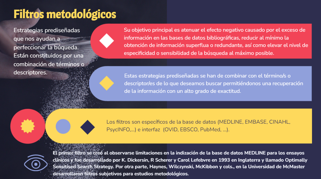 Los filtros de búsqueda son estrategias de búsqueda diseñadas para recuperar tipos específicos de registros, como los de un diseño metodológico concreto.