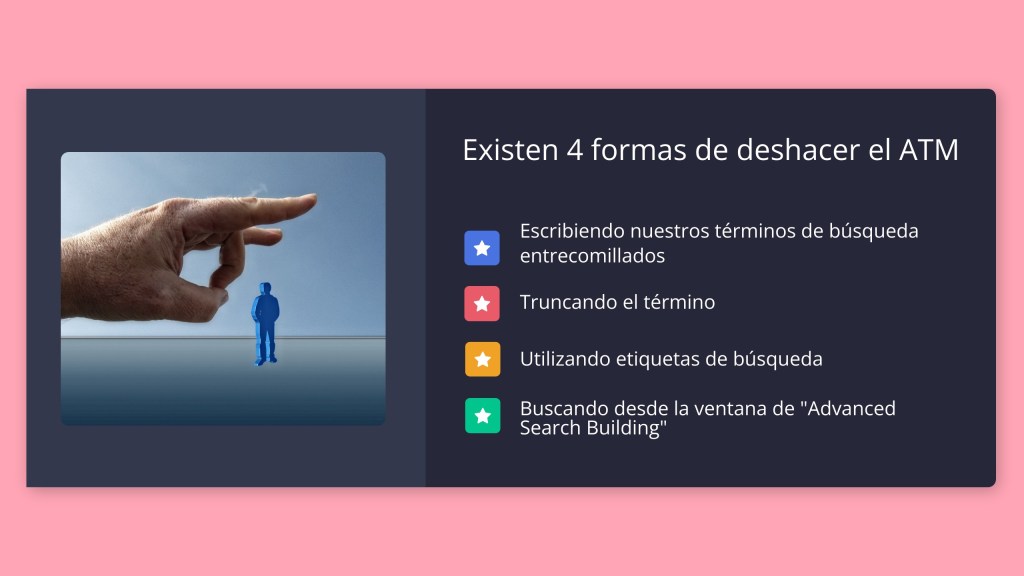 Para luego pasar a enseñar las opciones de búsqueda avanzada. Para ello buscaremos todos los términos posibles para cada concepto, según vemos en la figura: