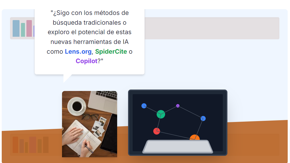 Copilot (u otros LLMs): apoyo en la generación de palabras clave y términos de búsqueda, pero no para estrategias completas