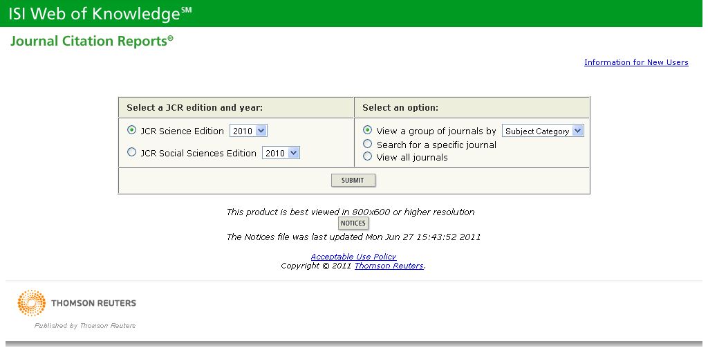 Desde el lunes 5 de octubre de 2015, Thomson Reuters pone a nuestra disposición la integración de un nuevo Journal Citation Report y Essential Science Indicators en la plataforma de Incites. En el blog de Biblioteca HFLR encontramos información de estas novedades de la Web of Science (WOS) y nos informan que ambas versiones convivirán hasta diciembre de 2015 y a partir de 2016 ya solo estará disponible esta nueva para JCR y esta para Essential Science Indicators.