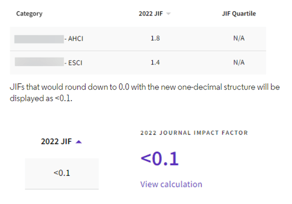 El nuevo Factor de Impacto muestra un decimal, en lugar de tres decimales. Este cambio dará lugar a que varias revistas tengan el mismo JIF y afectará la forma en que se clasifican (cuartiles) las revistas dentro del JCR.