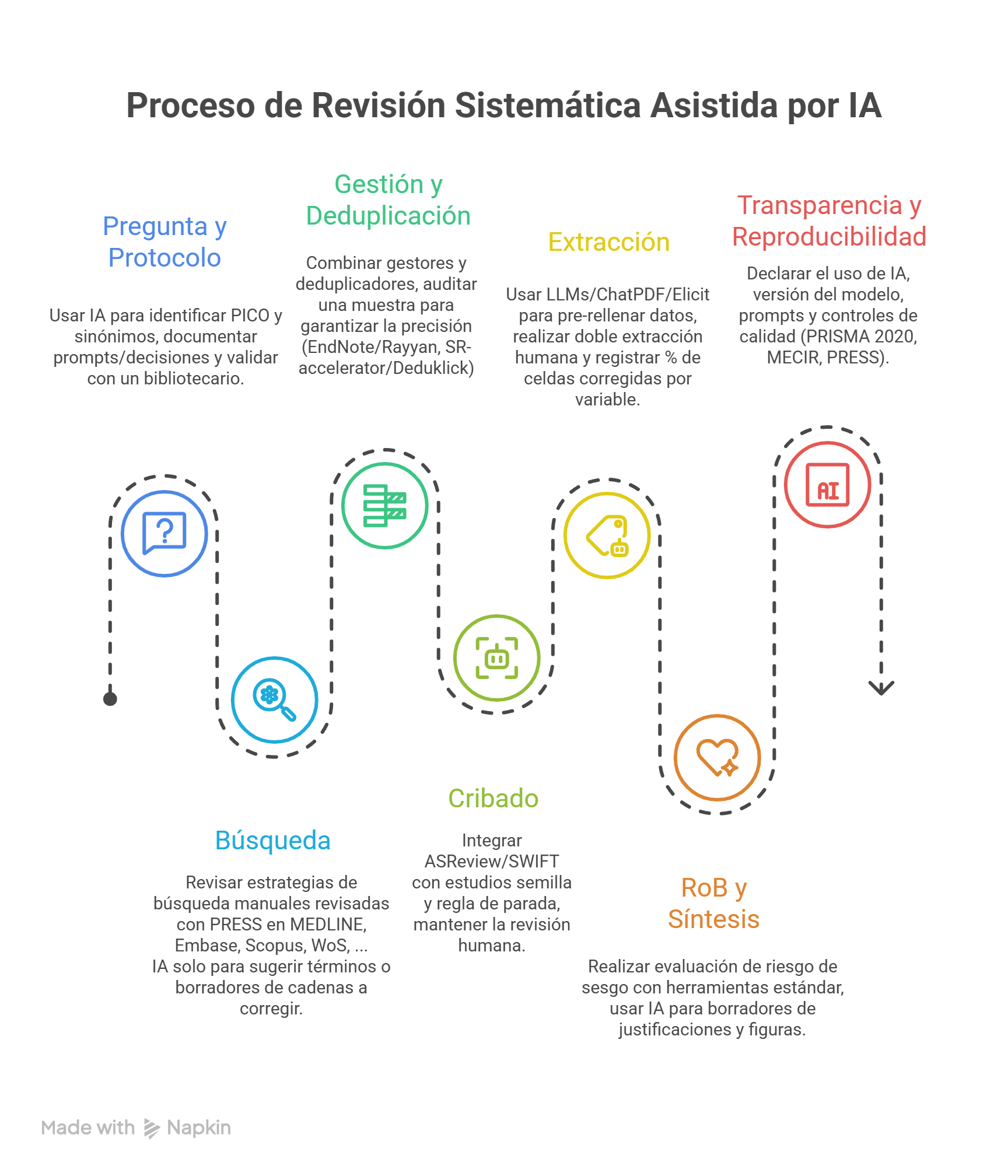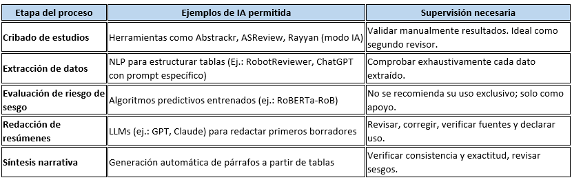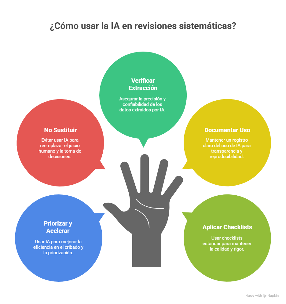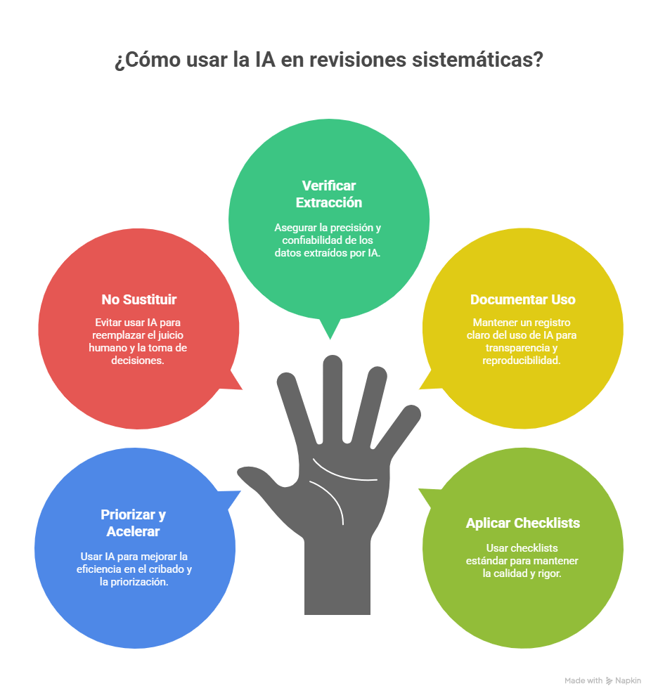 - Usa la IA siempre que no comprometas el rigor metodológico ni la integridad de la síntesis.