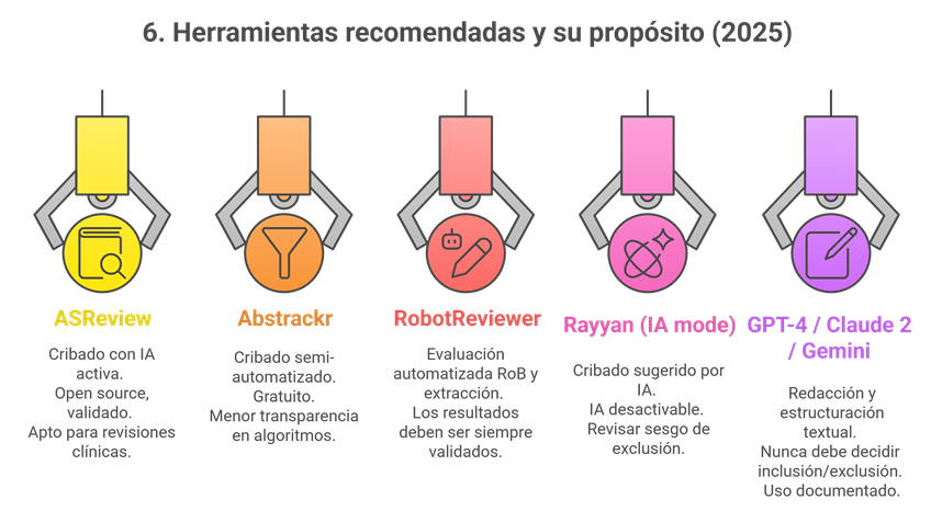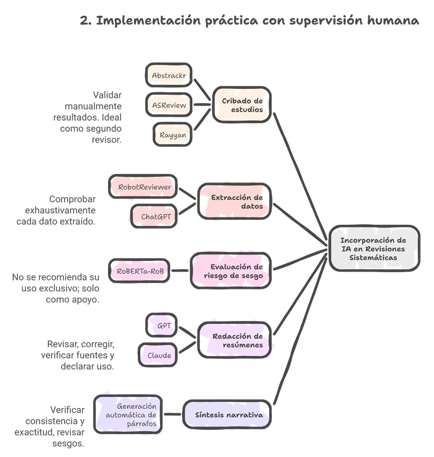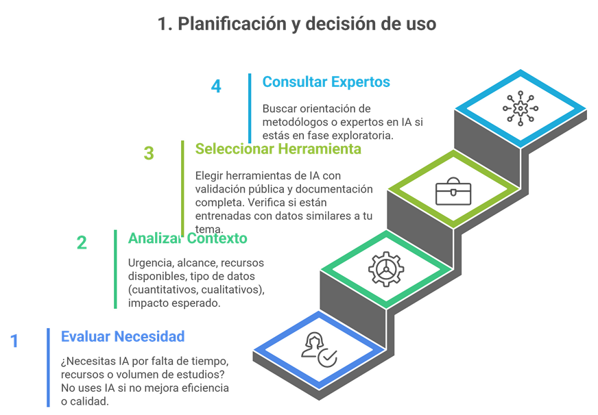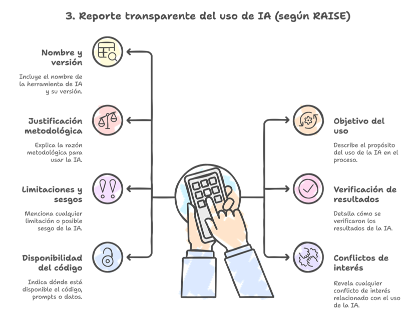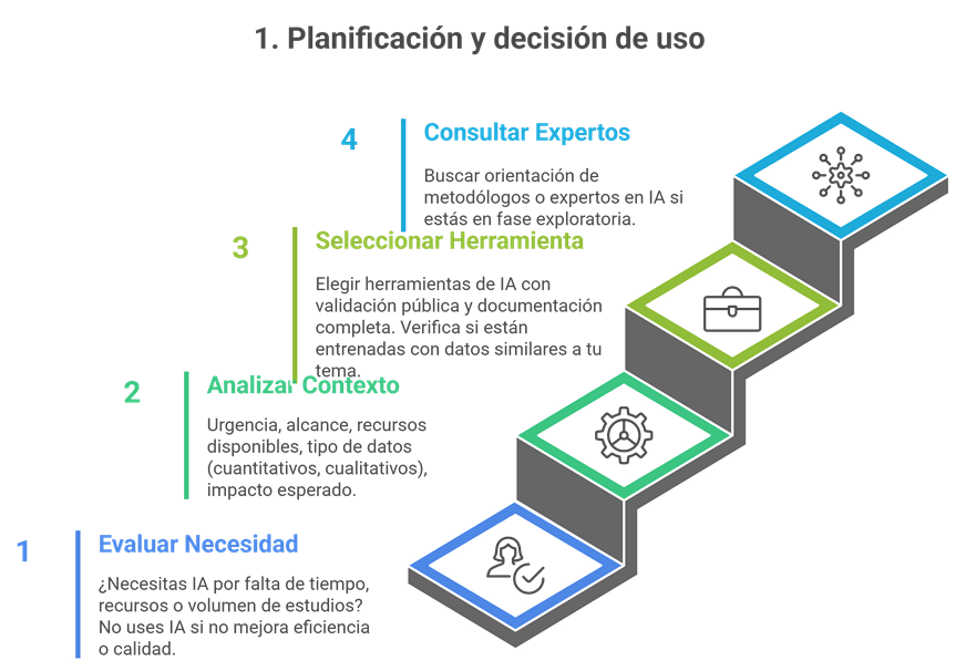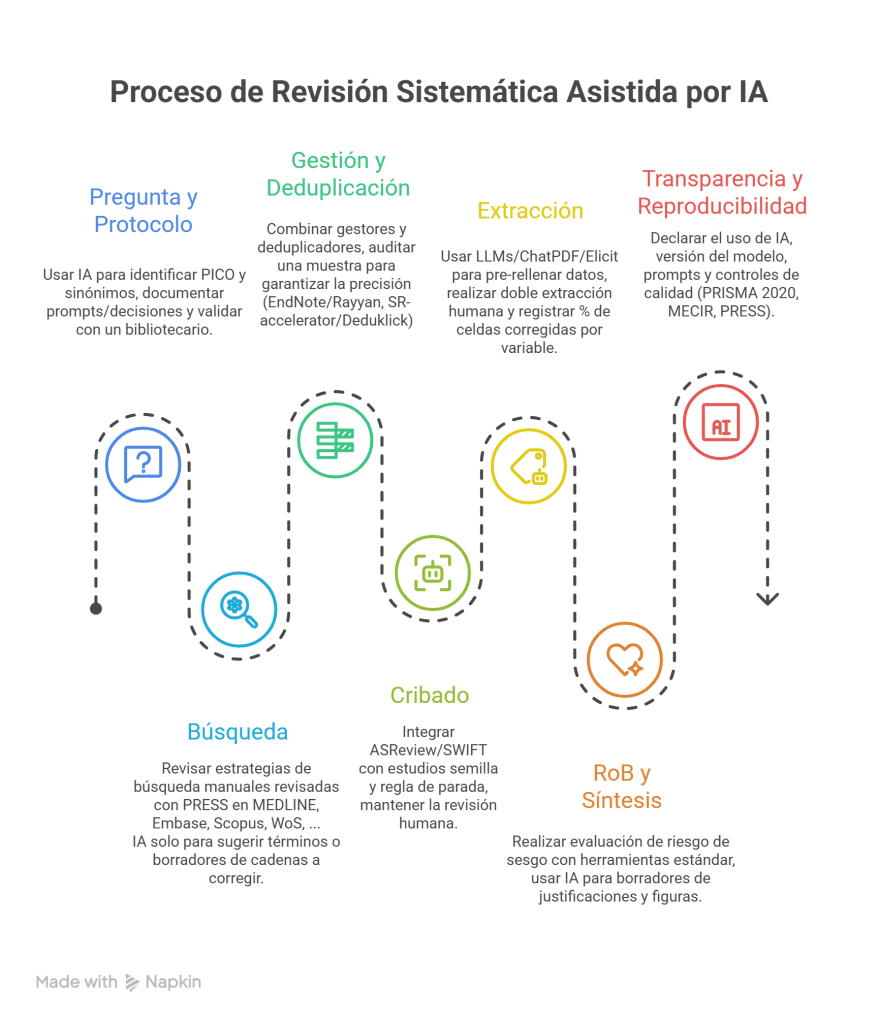 - Usa la IA siempre que no comprometas el rigor metodológico ni la integridad de la síntesis.