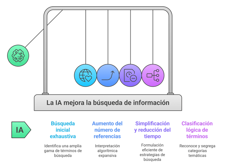 La aportación de la IA no reside únicamente en la aceleración de tareas, sino en la capacidad de ampliar, diversificar y estructurar el acceso a la literatura científica, amplificando los procedimientos manuales.