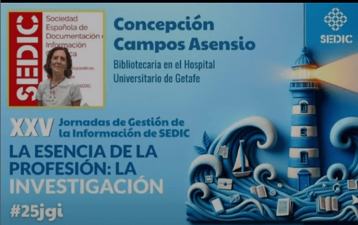 Cómo muchos de vosotros ya sabéis, soy bibliotecaria de ciencias de la salud en el Hospital Universitario de Getafe y con anterioridad del Hospital Central de la Cruz Roja. Me defino como especialista en documentación científica en ciencias de la salud y en documentos de síntesis de evidencia científica como revisiones sistemáticas y revisiones de alcance. Docente de cursos de competencias informacionales (alfabetización informacional) en ciencias de la salud orientados a profesionales sanitarios y profesionales de la información. Y, por último, produzco y difundo información científica a través de publicaciones científicas (https://orcid.org/0000-0003-2724-2563), mi blog biblioGetafe (https://bibliogetafe.com) y redes sociales como Twitter (https://twitter.com/biblioGetafe) o LinkedIn (https://es.linkedin.com/in/concepción-campos-asensio-28089721).