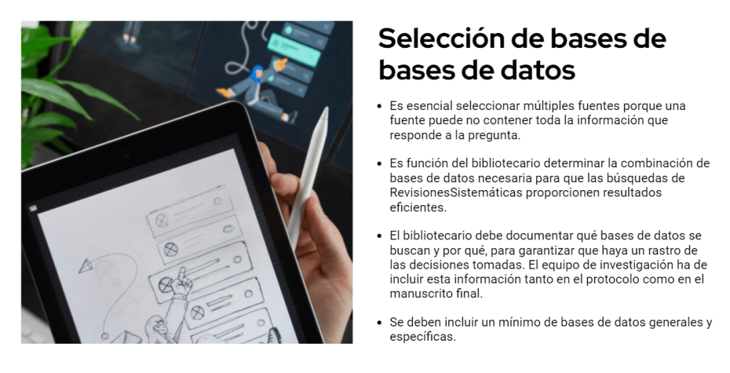 Es función del bibliotecario determinar la combinación de bases de datos necesaria para que las búsquedas de #RevisionesSistemáticas proporcionen resultados eficientes.