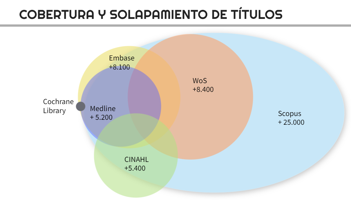 En cuanto a la cobertura y solapamiento de las bases de datos principales de ciencias de la saludcon WoS y Scopus tenemos que tener en cuenta lo siguiente