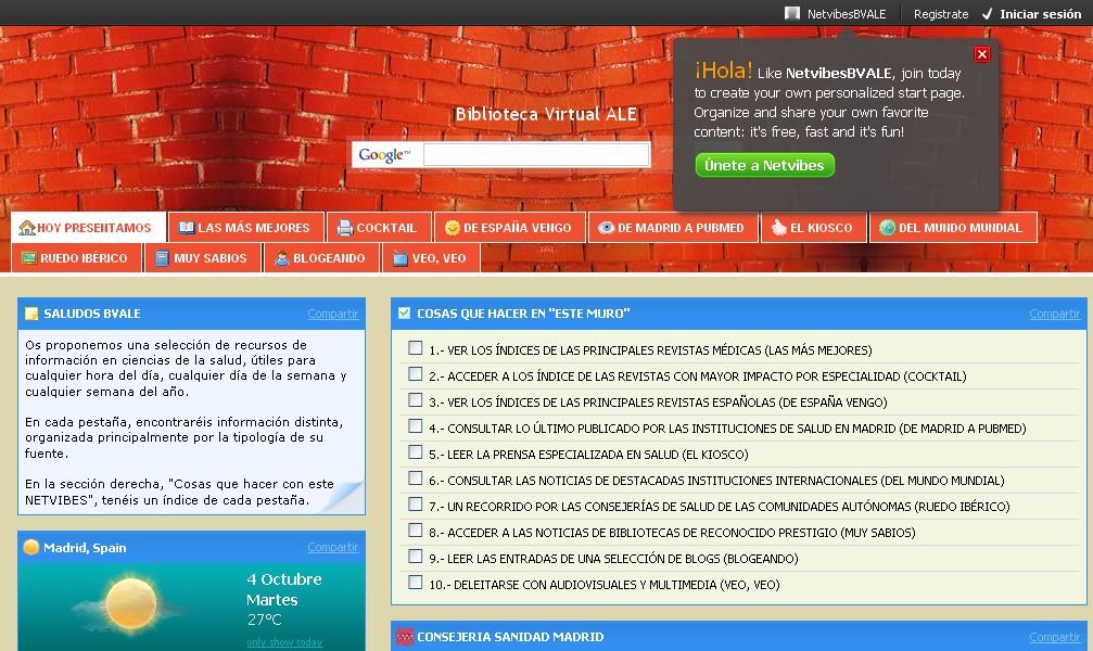 Impartido por Natalia Arroyo Vázquez, bibliotecaria de la Universidad de Navarra, nos aportó su experiencia, consejos, unas pautas claras y sencillas así como materiales bien trabajados, para crear una campaña de marketing en medios sociales en nuestras bibliotecas.